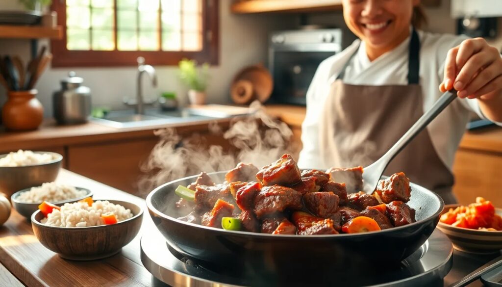 Cook the beef for 2-3 minutes on each side until it's browned and caramelized. Remember to stir occasionally for even cooking. Once done, remove it from the heat and let it rest briefly before serving.