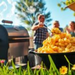 Macaroni and cheese in a smoker