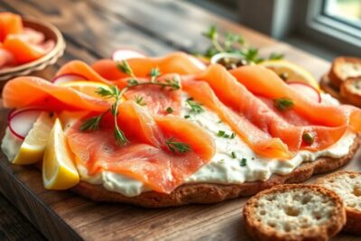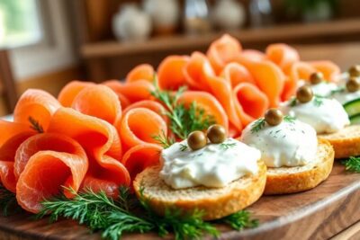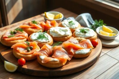 What are popular pairings with smoked salmon and cream cheese?