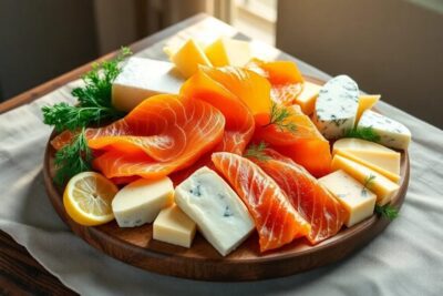 - Use a platter for a charcuterie-style presentation, layering salmon, cheese, and assorted crackers.